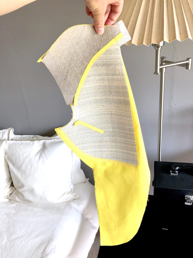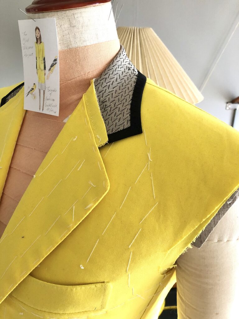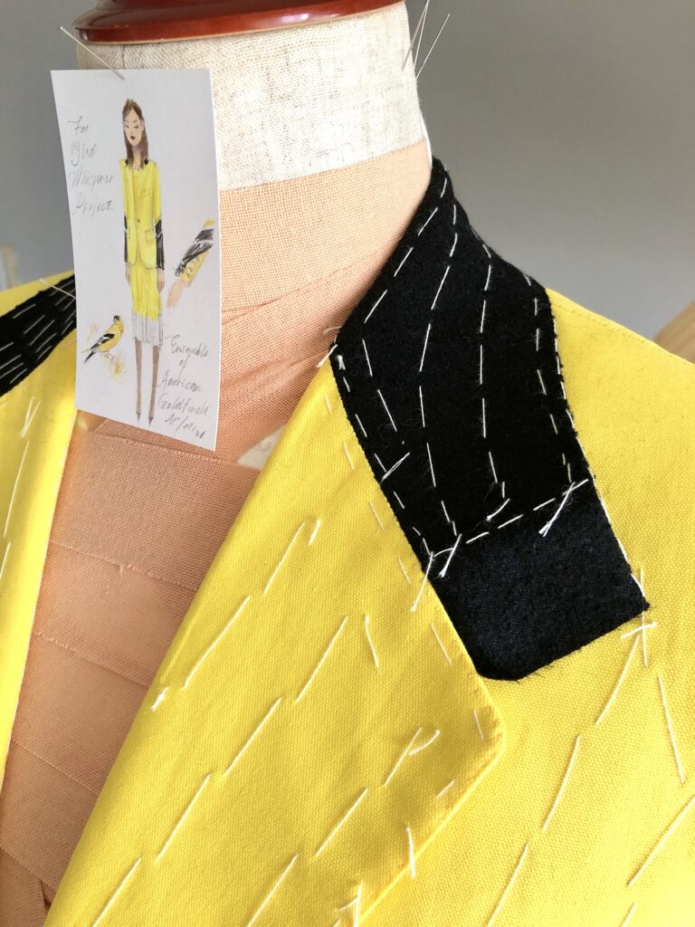 コンセプトに共感してご注文をいただけたお客様とは、面談を重ねながら、想定される着用場面やデザインの好み、もちろん愛鳥家の方であればお好きな鳥についてなどをお伺いし、私がその方からイメージした野鳥をモチーフにしたデザインをご提案して、その後、更にお話し合いを重ねながら、実際の生活の中で着用できる一着となるようすり合わせてゆきます。