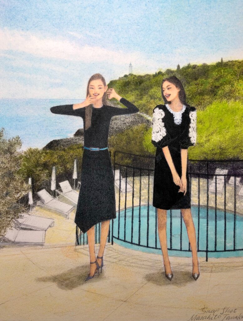 195×154mm ARCHE水彩紙 色鉛筆、パステル、コピックマーカー 2020年 販売価格 ¥ 35,000(額装込み) 世田谷区のZINE専門店 MOUNT TOKYO 企画のグループ展にお誘いいただき、テーマ“Holidays”に合わせて制作した一枚。